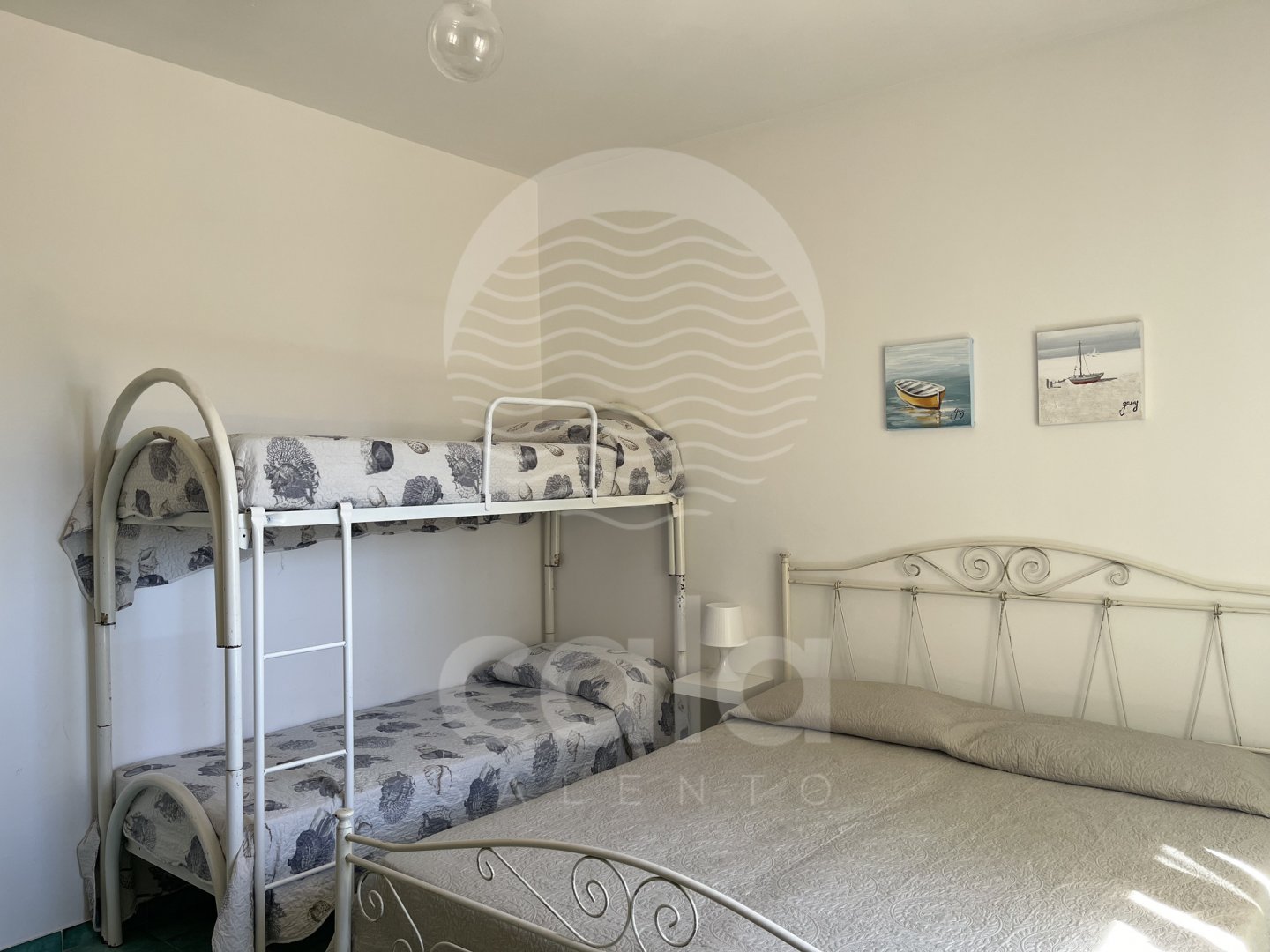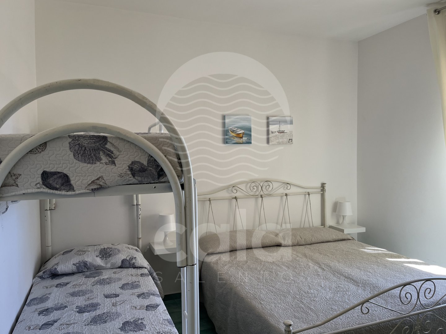 SCHLAFPLÄTZE: 1. Schlafzimmer mit Doppelbett und Klimaanlage, 2. Schlafzimmer mit Doppelbett und Etagenbett sowie Klimaanlage. Zwei Badezimmer, eines davon mit WC und das andere mit Duschkabine.