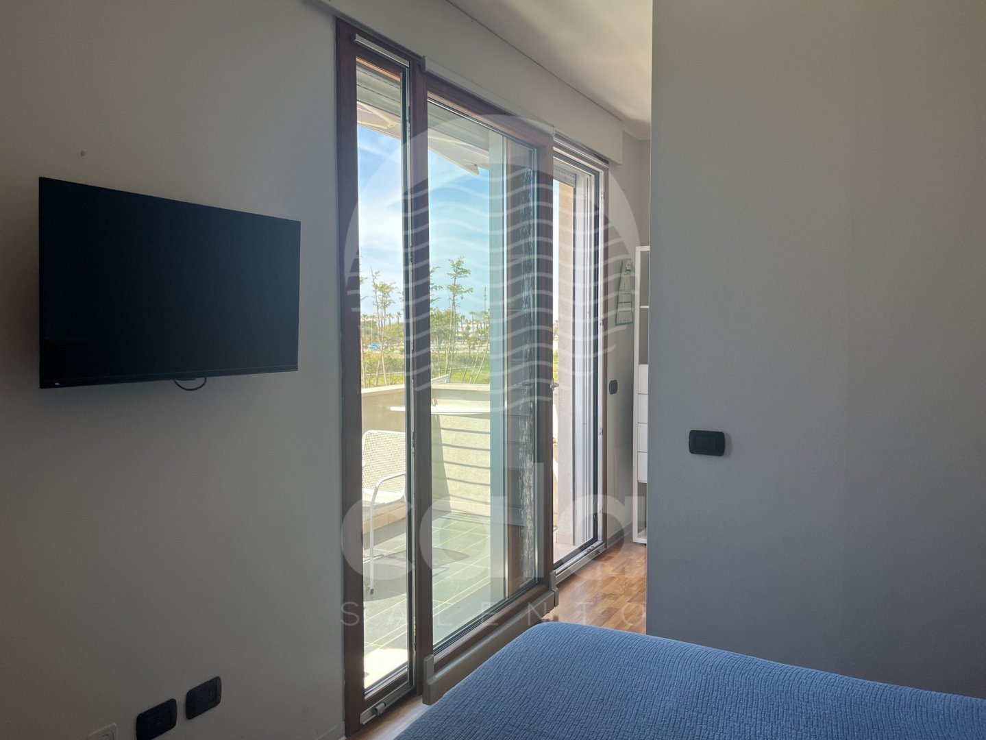 Die Ferienwohnung verfügt über ein klimatisiertes Schlafzimmer mit Doppelbett – perfekt für erholsame Ruhe, auch an heißen Sommertagen.