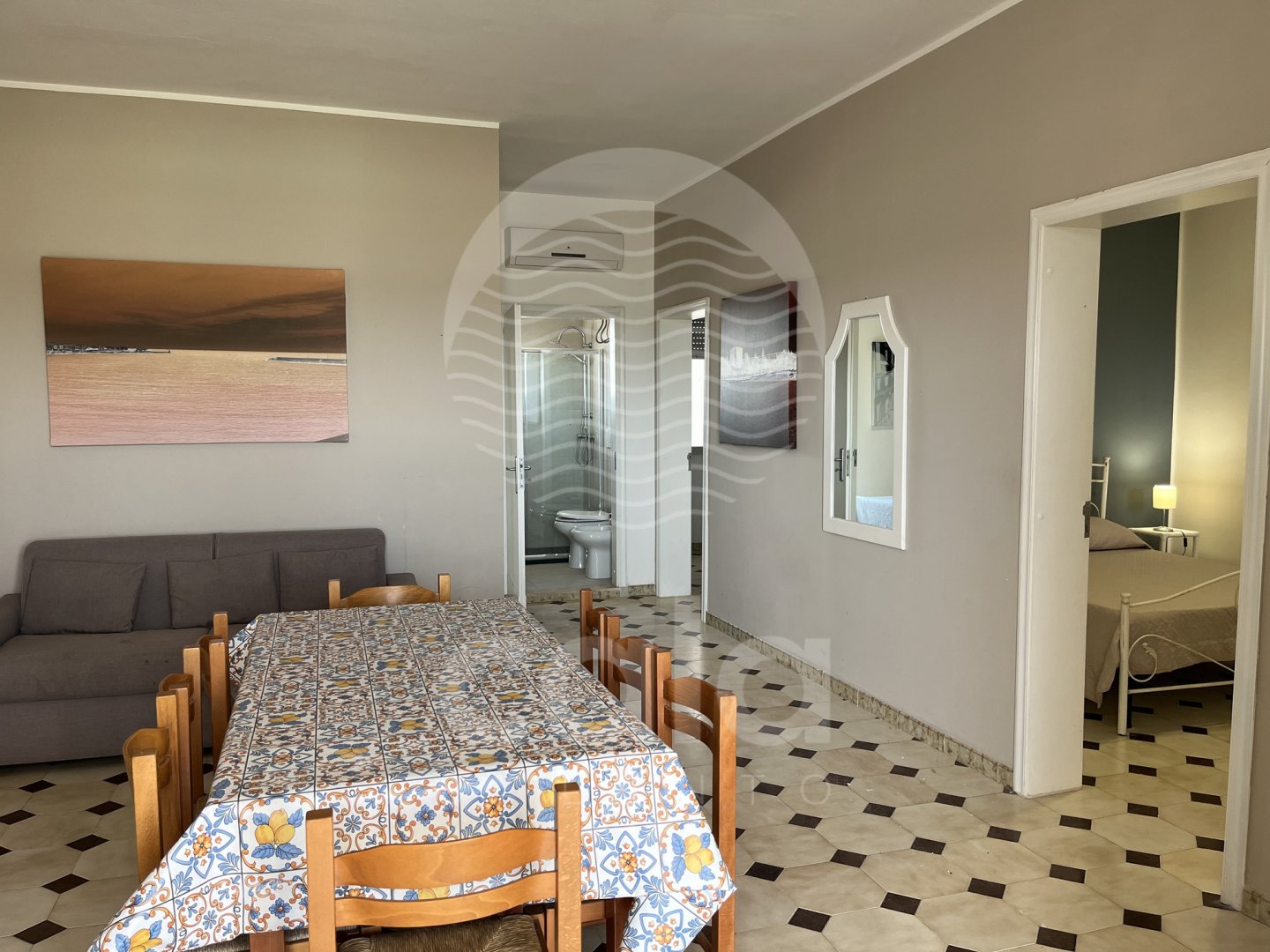 WOHNBEREICH: Die Wohnung besteht aus einem großen klimatisierten Wohnzimmer mit TV und Zugang zur Kochnische, die mit allem Komfort ausgestattet ist: Kühlschrank, Backofen, Küchenutensilien, Geschirr und Kochgeschirr (Küche nur mit kaltem Wasser). Komplett ausgestattetes Badezimmer mit Dusche.