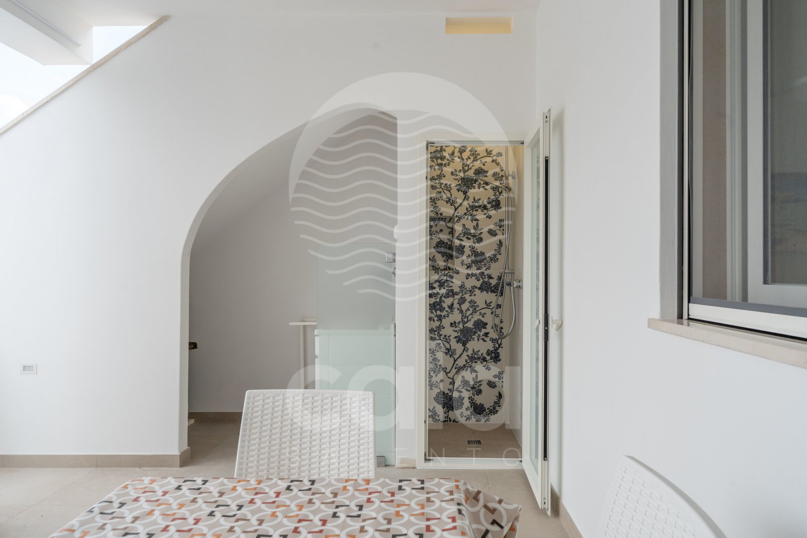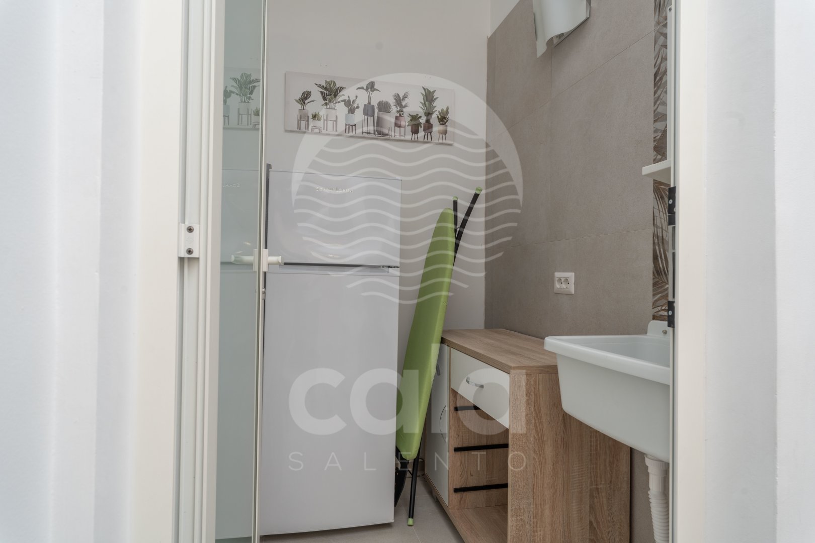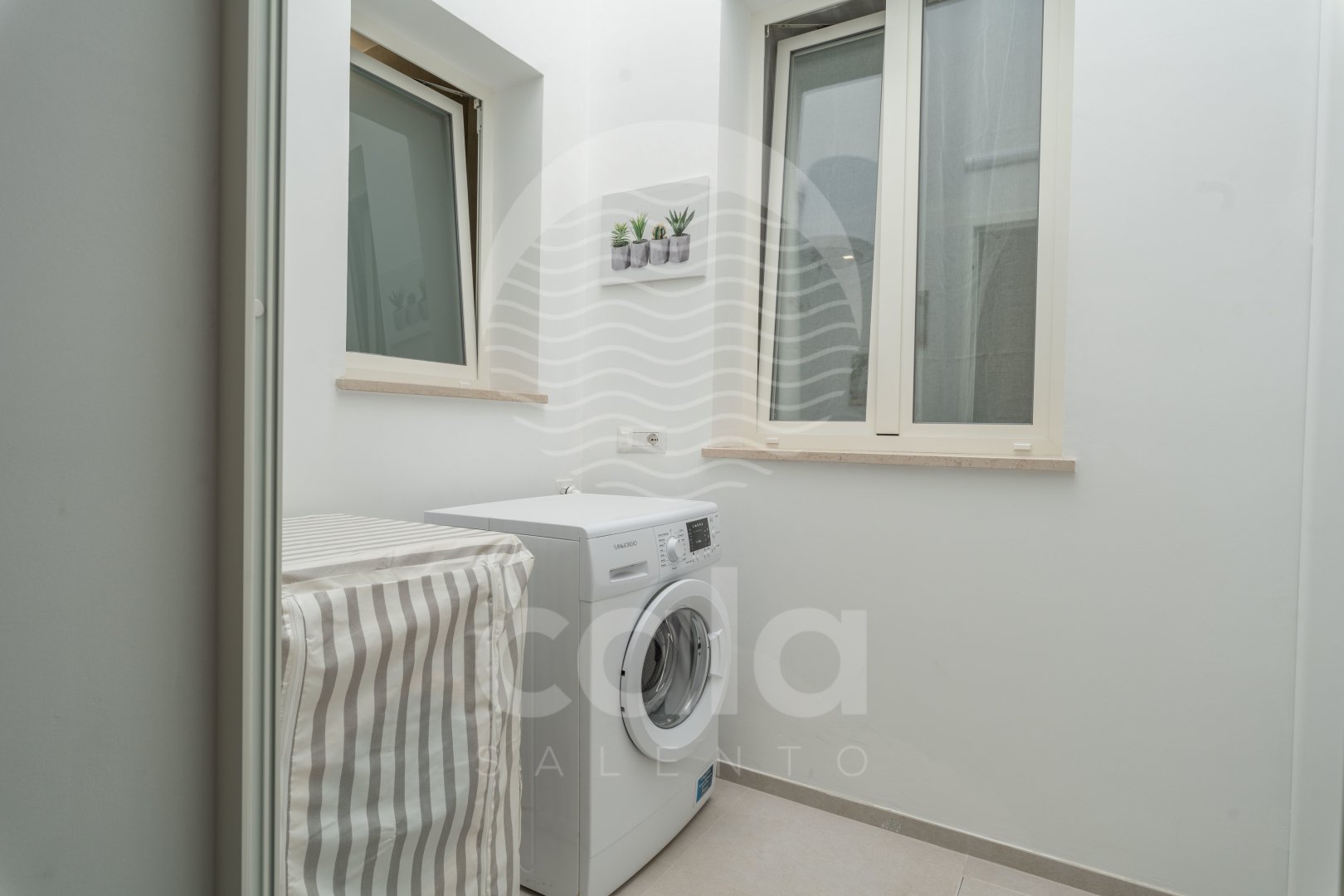 WEITERE AUSSTATTUNG: Außenbereich mit Tisch und Stühlen. Stufe vor der Haustür (siehe Foto). Waschmaschine. Außendusche mit Warmwasser. Fliegengitter. Zwei Parkplätze im Garten. Grill. Wasserversorgung durch Acquedotto Pugliese. Torre Lapillo in 650 m. Porto Cesareo in 5 km. Supermarkt in 100 m.