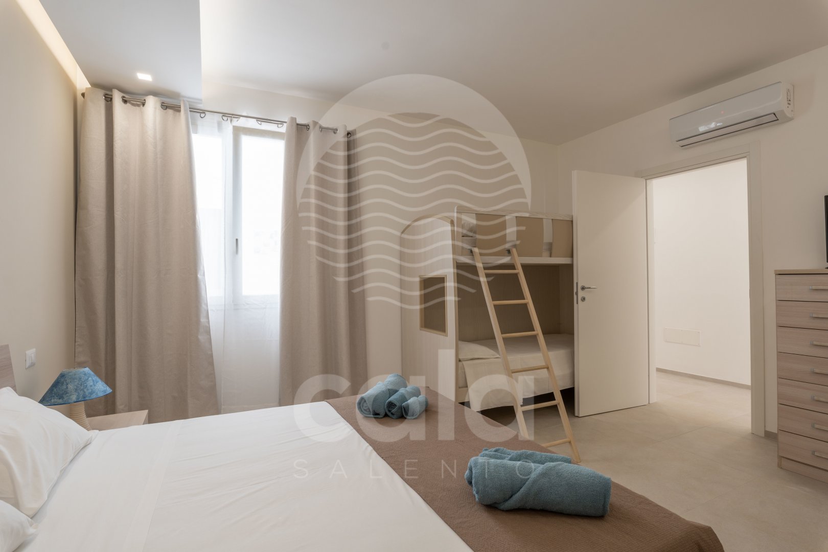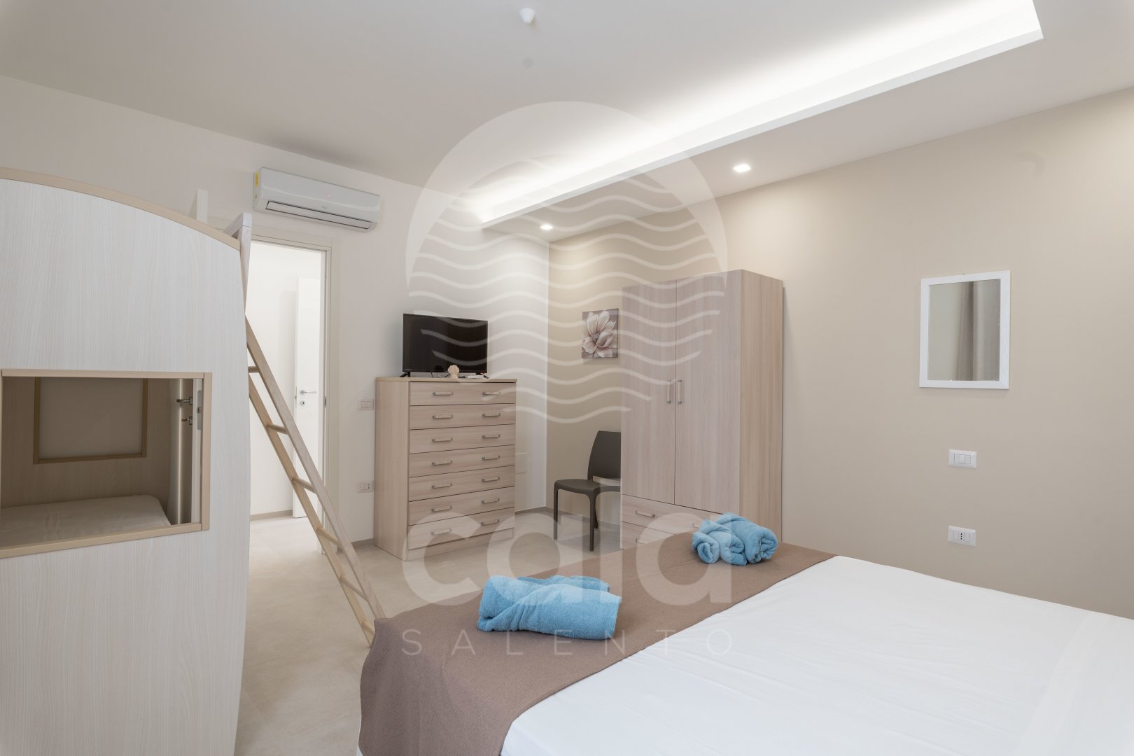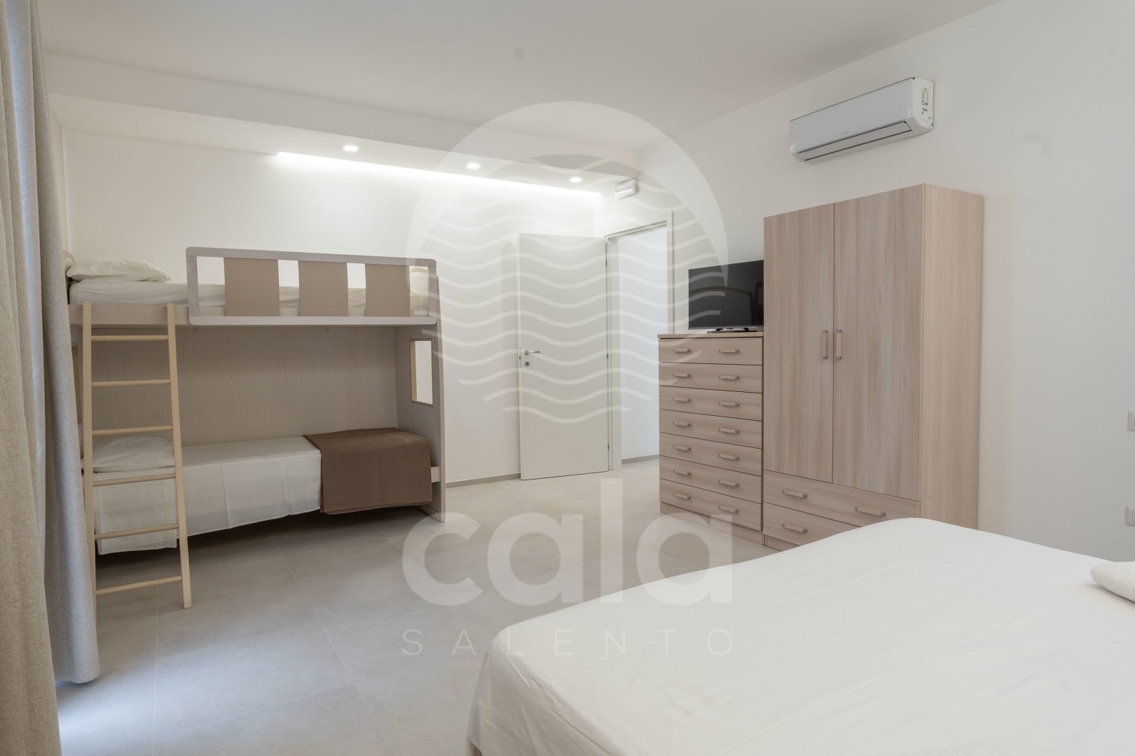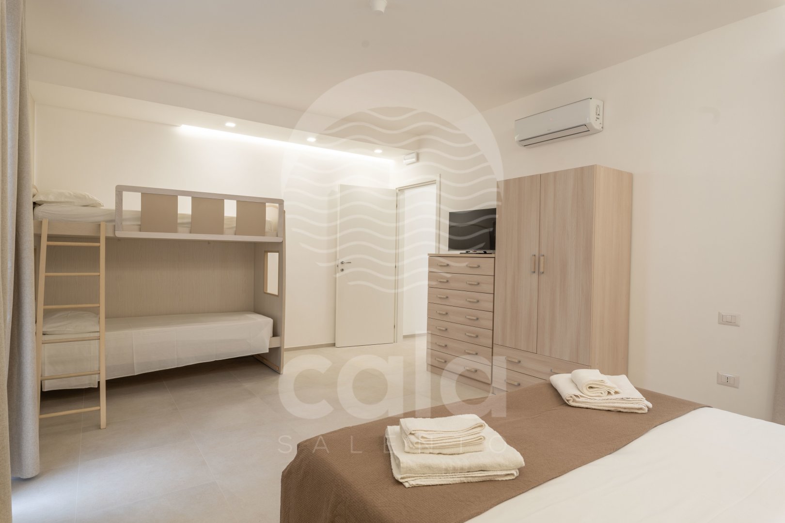 ÜBERNACHTUNGSMÖGLICHKEITEN: 2 Schlafzimmer (1. Schlafzimmer mit Doppelbett und klimatisiertem Etagenbett; 2. Schlafzimmer mit Doppelbett und klimatisiertem Etagenbett). Zwei Badezimmer mit WC und Dusche.