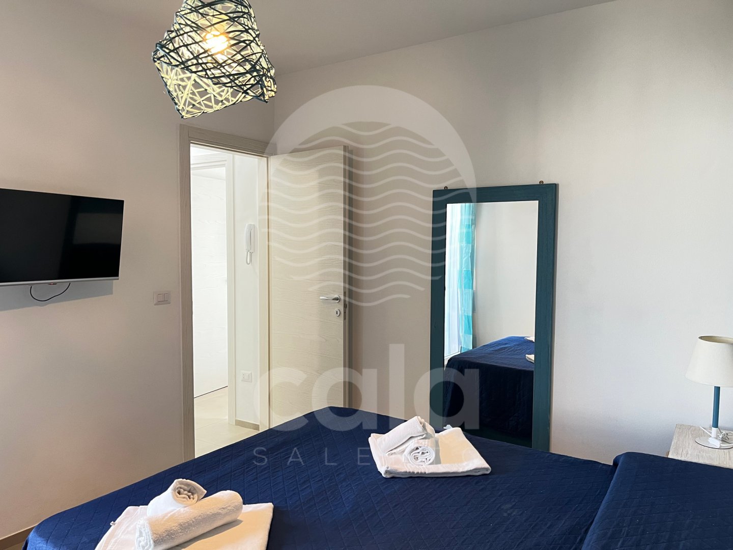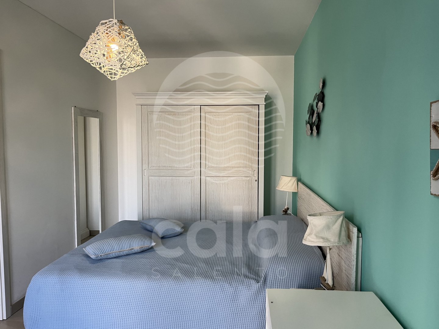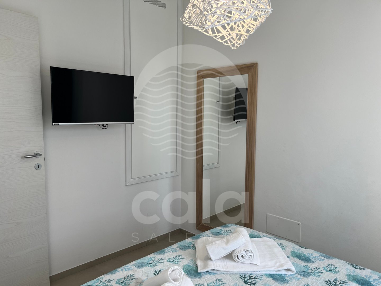Second unit: one double bedroom, a living room with open-plan kitchen and a double sofa bed, one full bathroom.