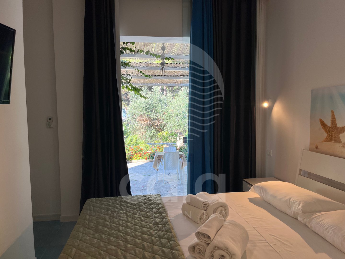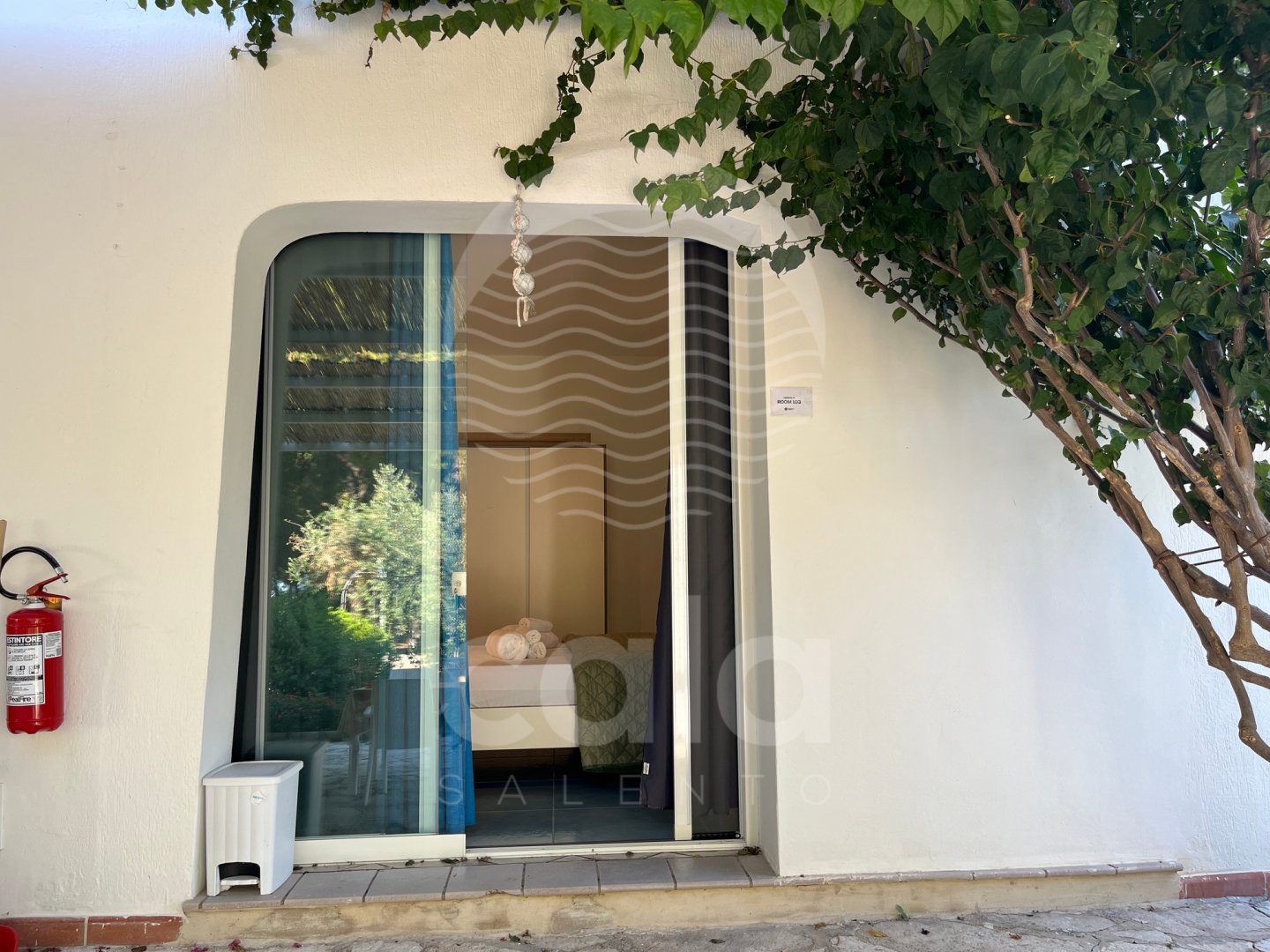 Cala Salento offers a villa surrounded by a 3,000-square-meter garden with lush pines, divided into 20 rooms nestled in greenery. This room provides an oasis of tranquility and comfort for its guests, just 250m from Porto Cesareo beach.