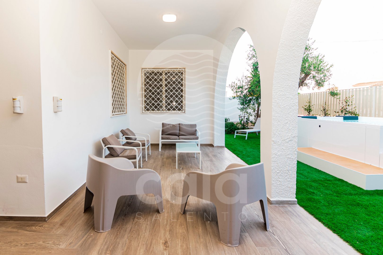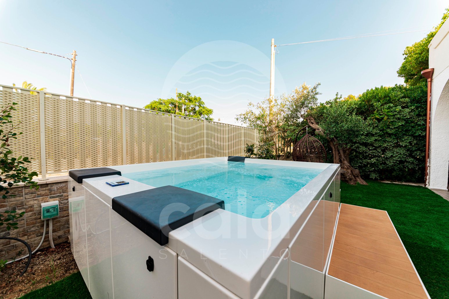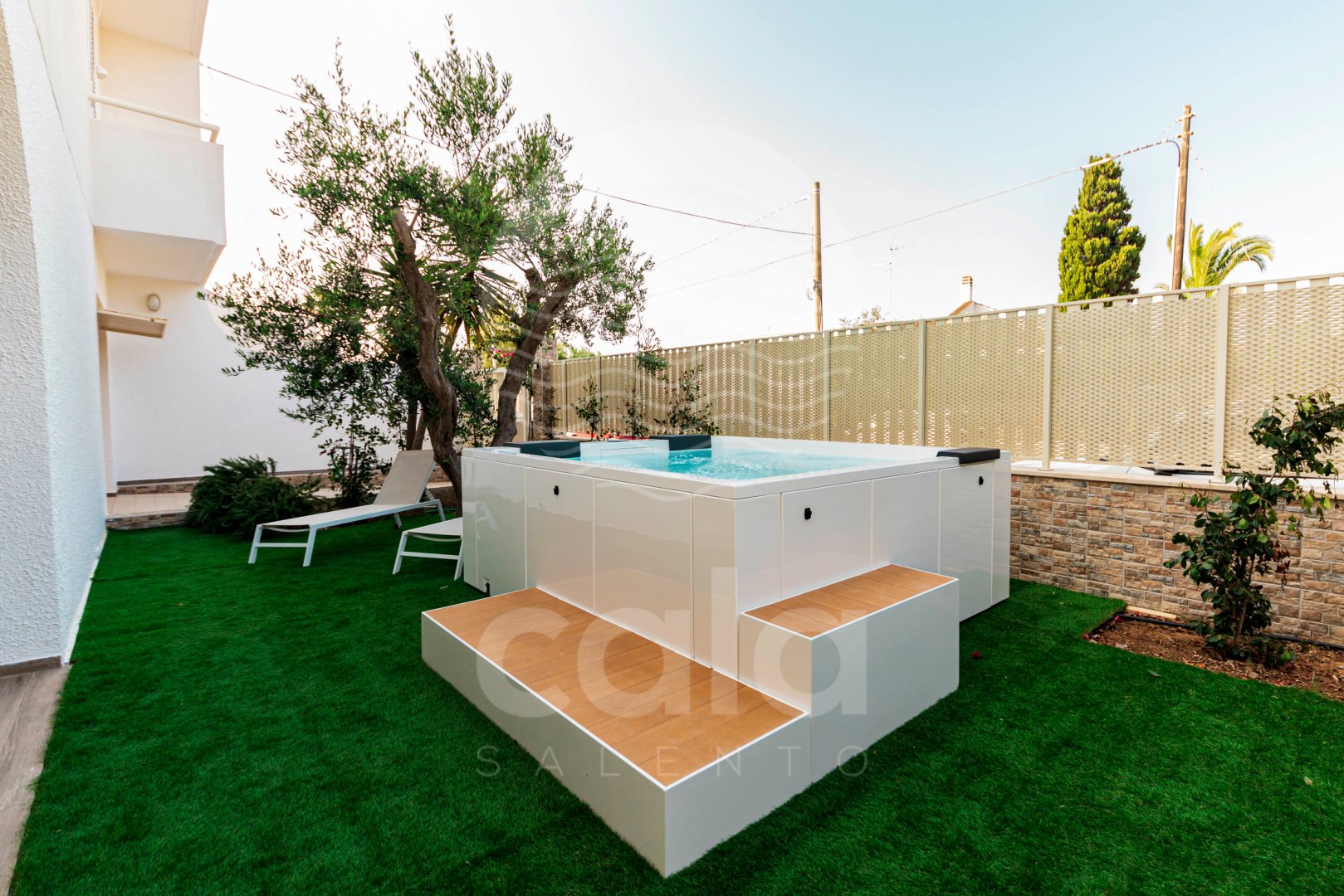 Cala Salento presents Villa Giada, an exclusive, air-conditioned independent villa with a mini pool with hydromassage, accommodating up to 10 guests, located just 350 meters from the sandy beaches of Porto Cesareo, close to Lido Le Dune and Lido Tabù.