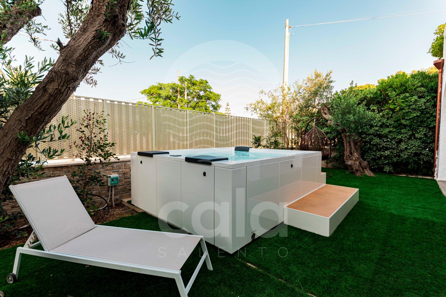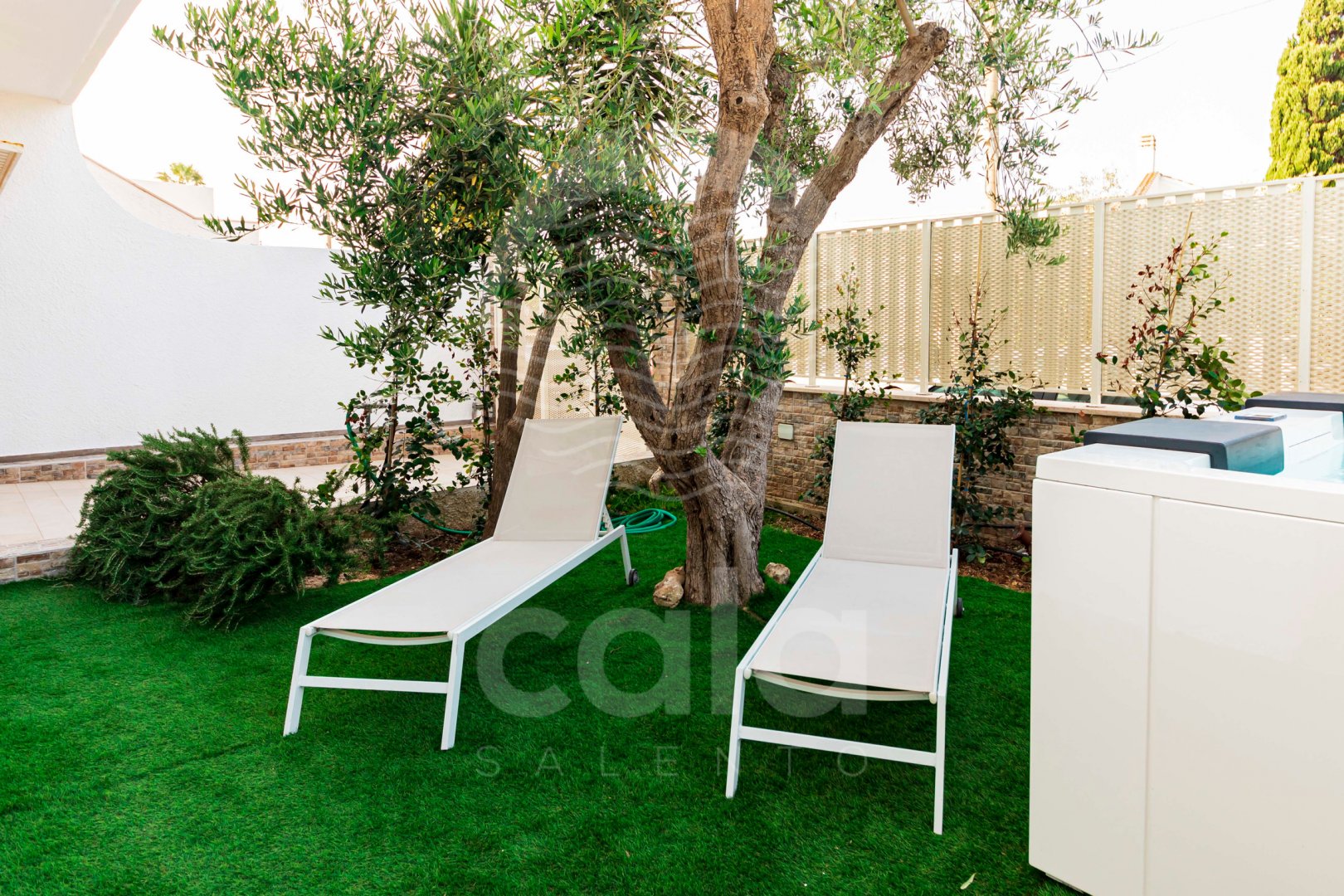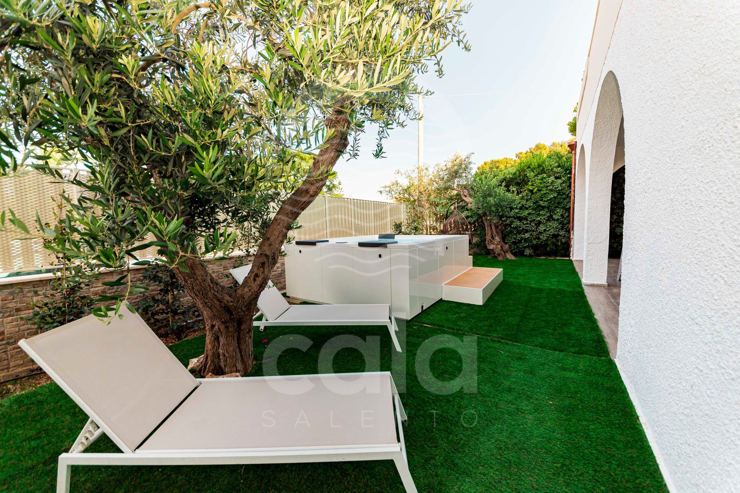Cala Salento presents Villa Giada, an exclusive, air-conditioned independent villa with a mini pool with hydromassage, accommodating up to 10 guests, located just 350 meters from the sandy beaches of Porto Cesareo, close to Lido Le Dune and Lido Tabù.