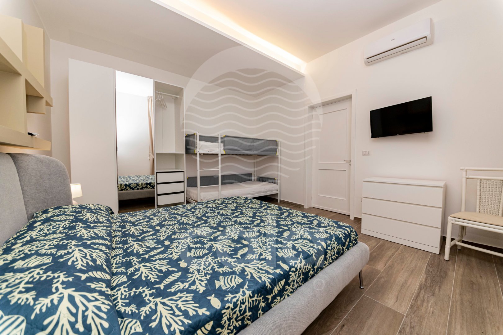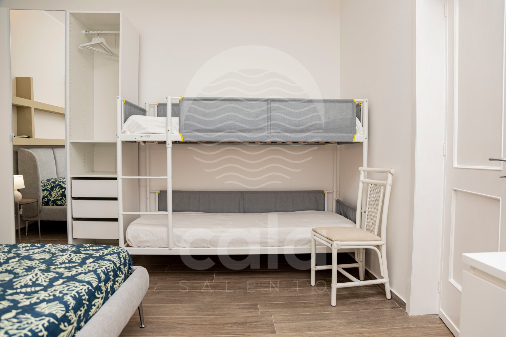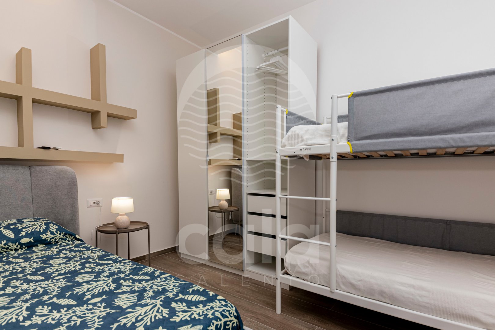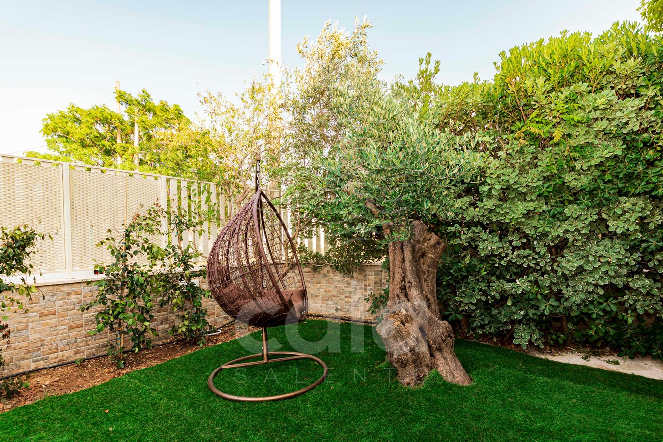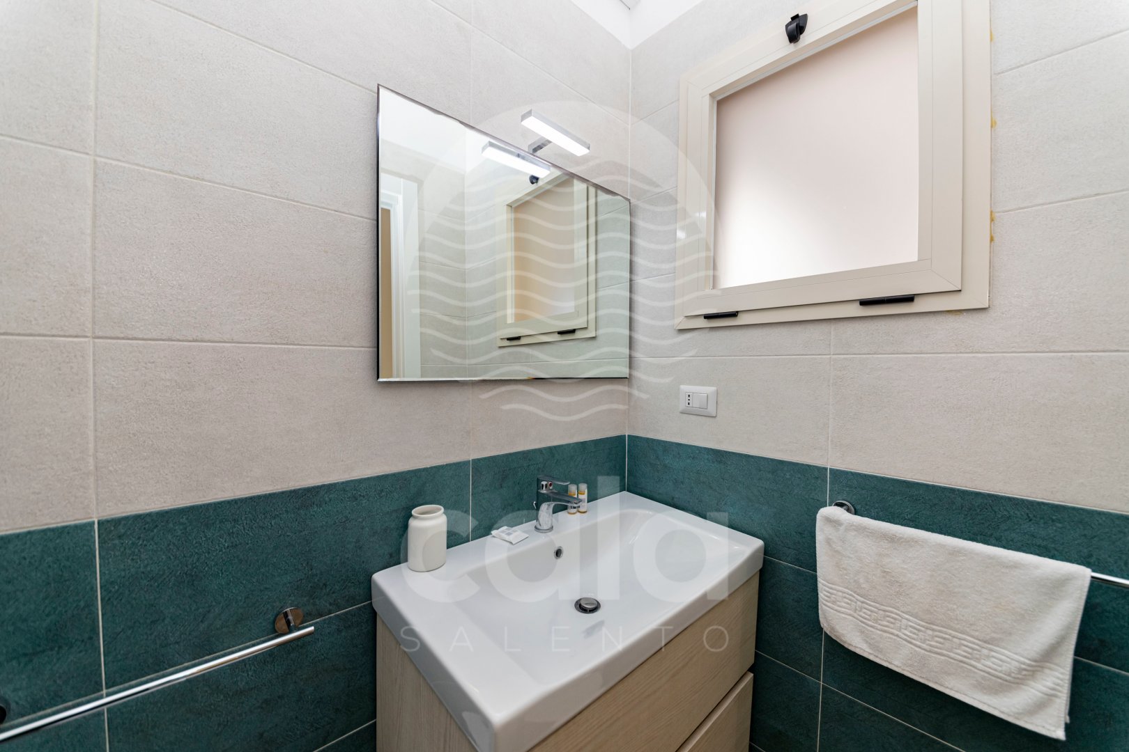 Extras: Mini pool with hydromassage (2.35 x 2.80 x 0.95 m), large furnished verandas with dining table and chairs for al fresco meals, comfortable armchairs, typical Salento garden with olive trees. Two outdoor showers, internal parking for 2–3 cars, stone barbecue, mosquito nets, blackout curtains, Wi-Fi. Pets allowed.