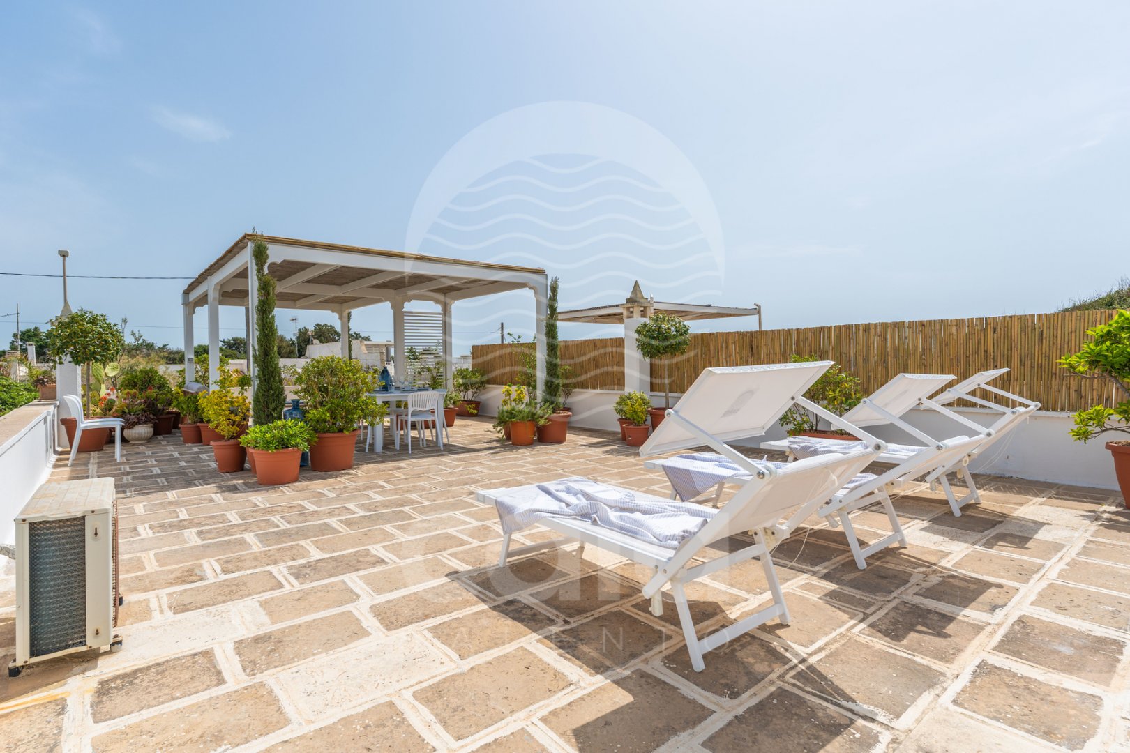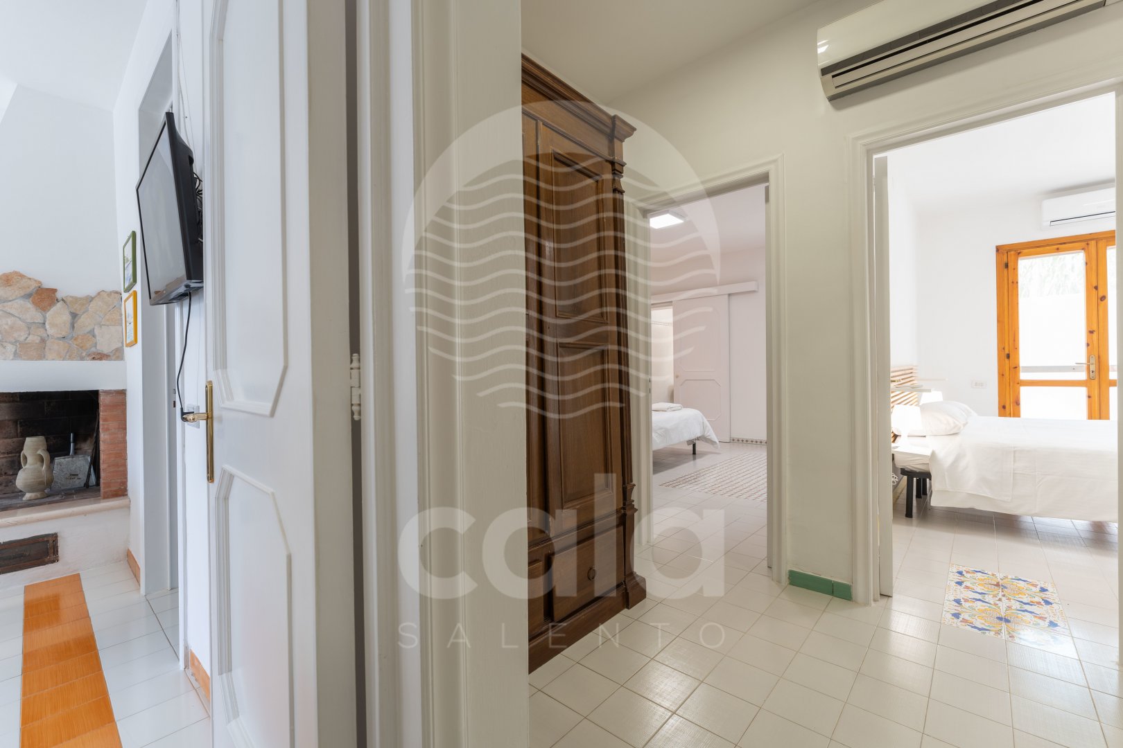 Cala del Salento presents this exclusive independent villa with 9 beds (3 bedrooms and 2 bathrooms), located just 10 meters from the stunning beach of Torre Lapillo, between the Bacino Grande and Stella Maris beach clubs. The villa features a garden with 2 parking spaces and a spacious furnished patio, perfect for enjoying unforgettable days by the sea with friends and family.