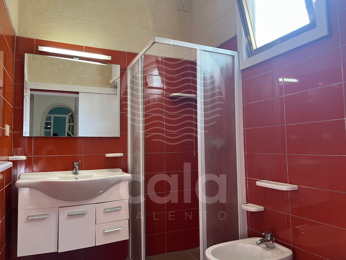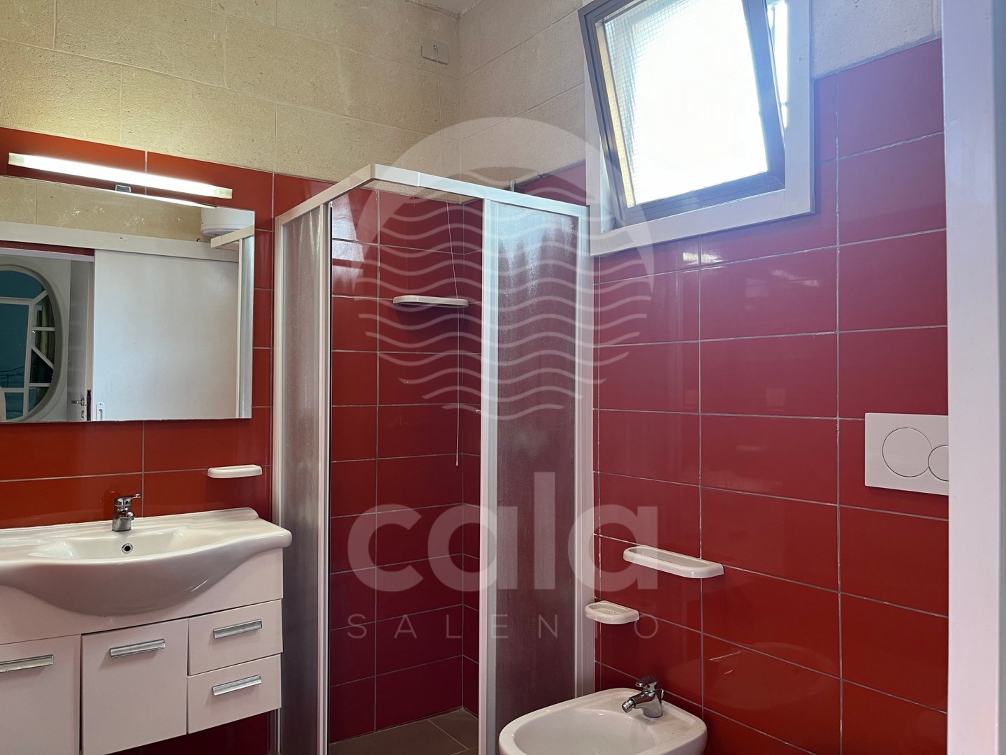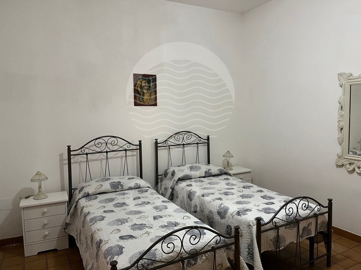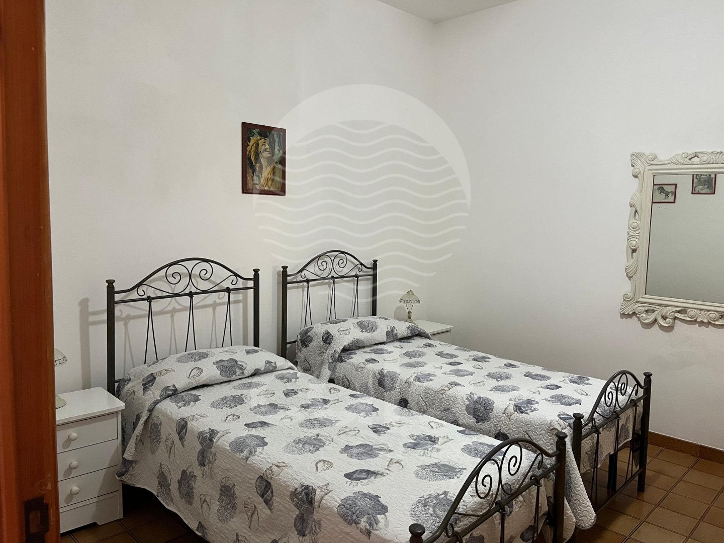 SLEEPING AREA: air-conditioned hallway (1st double bedroom, 2nd bedroom with 2 single beds that can be joined together for double use if necessary). Bathroom with amenities and shower box.