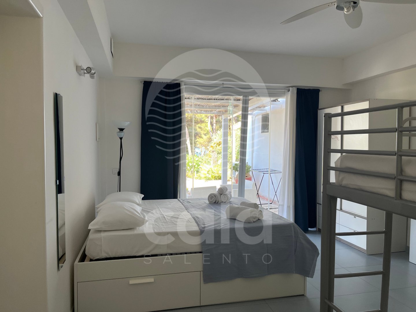 Cala Salento propose une villa entourée d’un jardin de 3 000 m² avec des pins luxuriants, divisée en 20 unités résidentielles au cœur de la verdure. Cette chambre offre une oasis de tranquillité et de confort, à seulement 250 m de la plage de Porto Cesareo.
