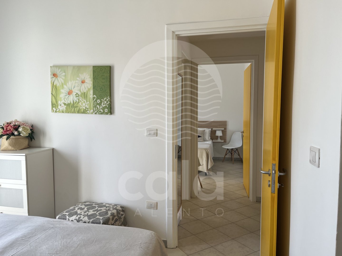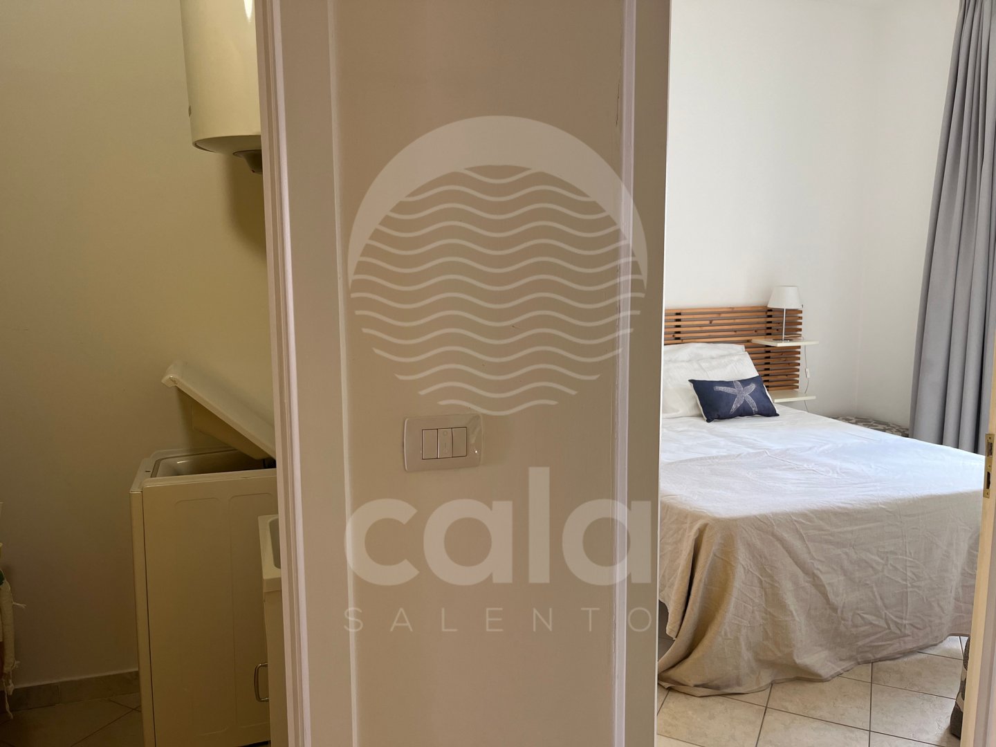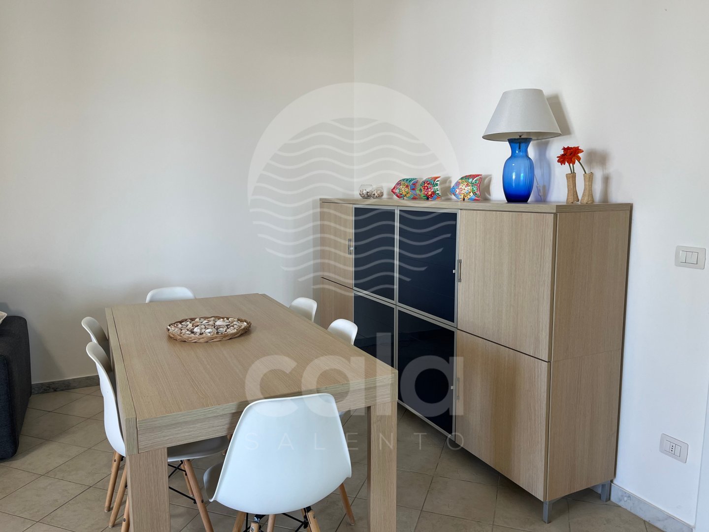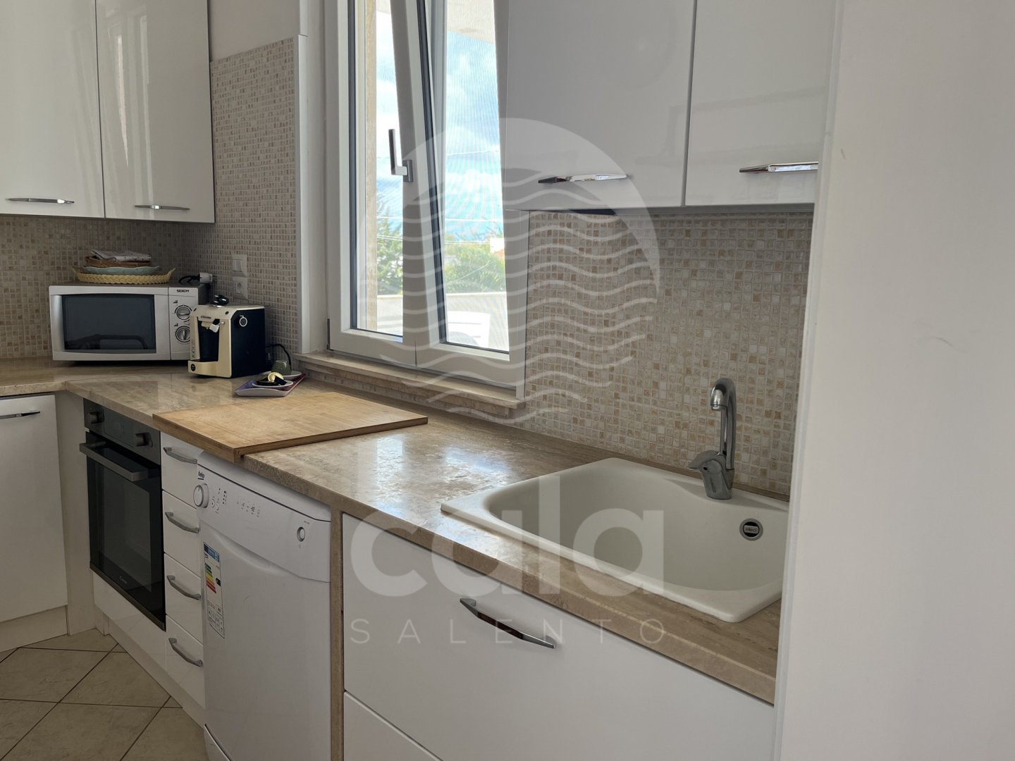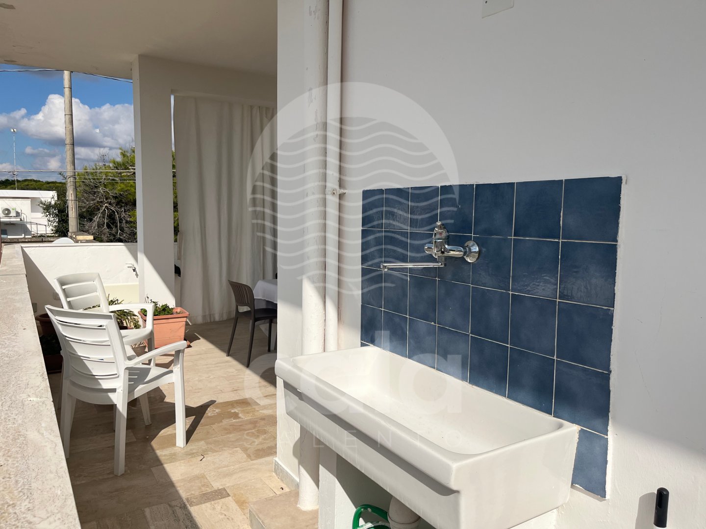 Cala Salento vous propose à la location ce joli appartement au premier étage, situé à seulement 40 mètres de la plage. La grande véranda aménagée avec table à manger et confortable canapé vous permettra de profiter de moments de détente en plein air, tout en admirant de magnifiques couchers de soleil.