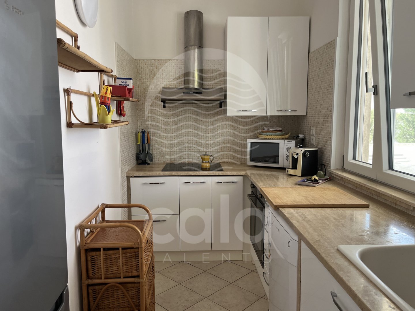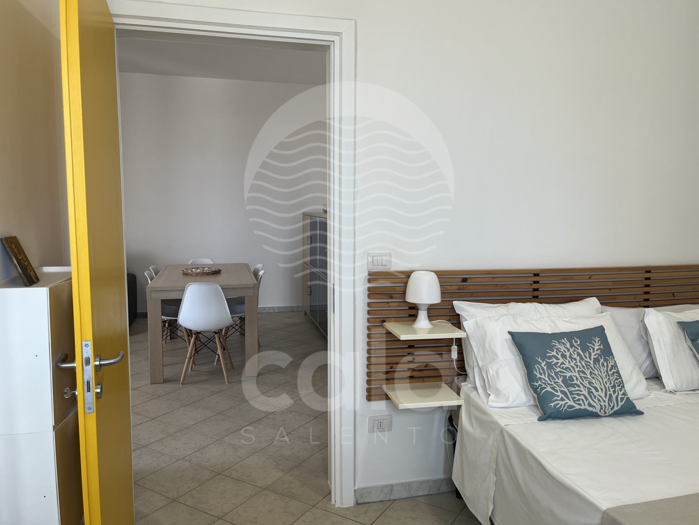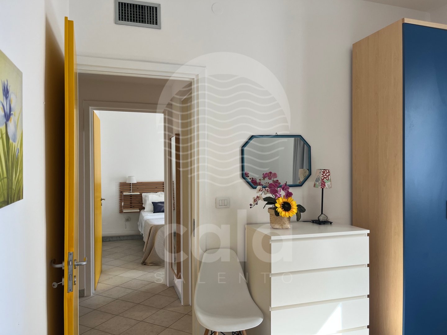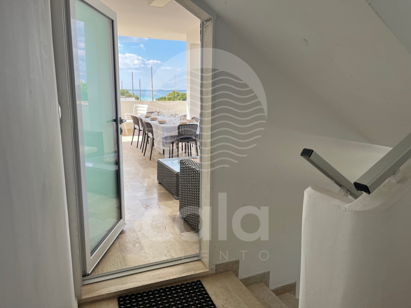 Cala Salento vous propose à la location ce joli appartement au premier étage, situé à seulement 40 mètres de la plage. La grande véranda aménagée avec table à manger et confortable canapé vous permettra de profiter de moments de détente en plein air, tout en admirant de magnifiques couchers de soleil.