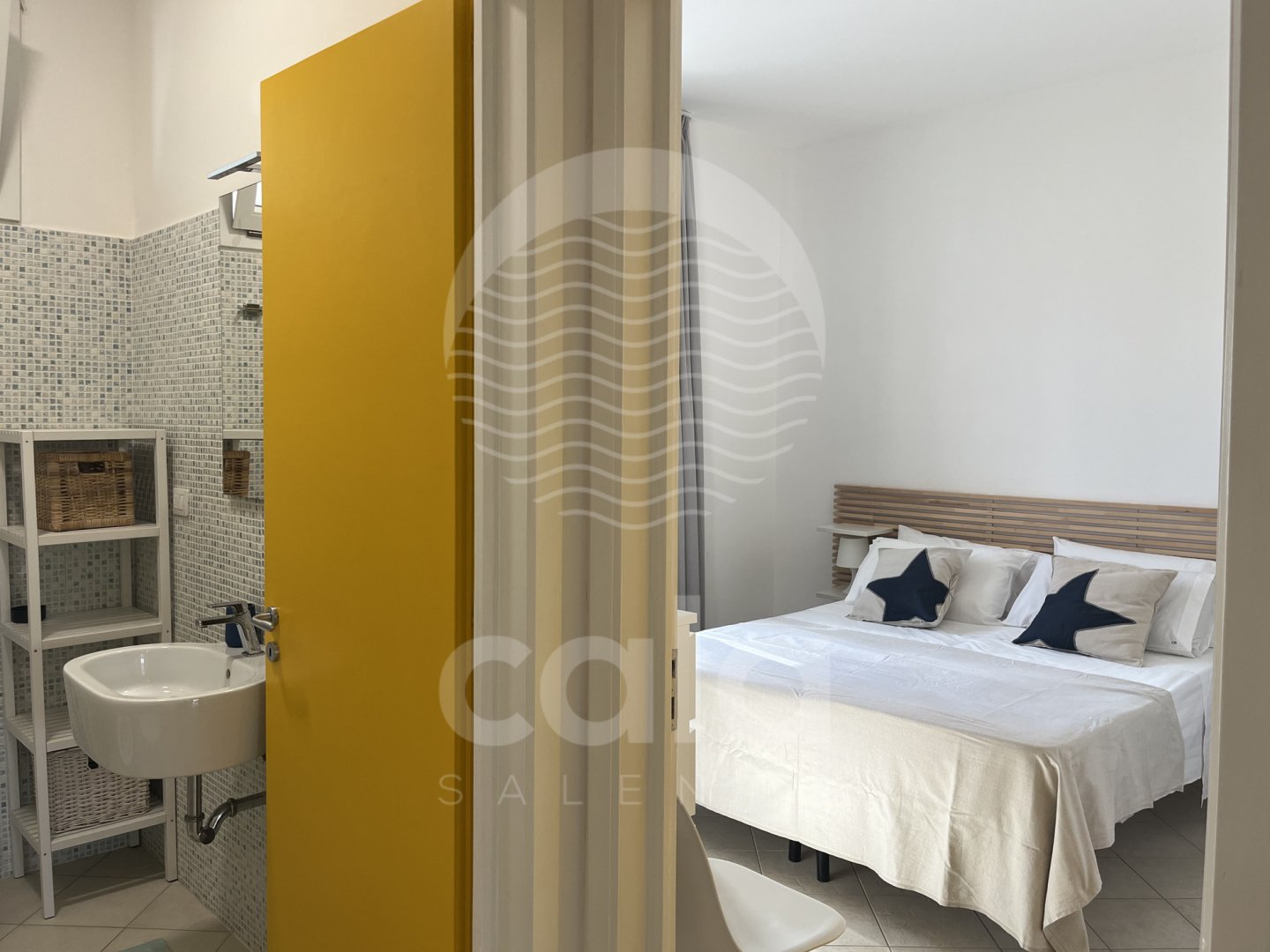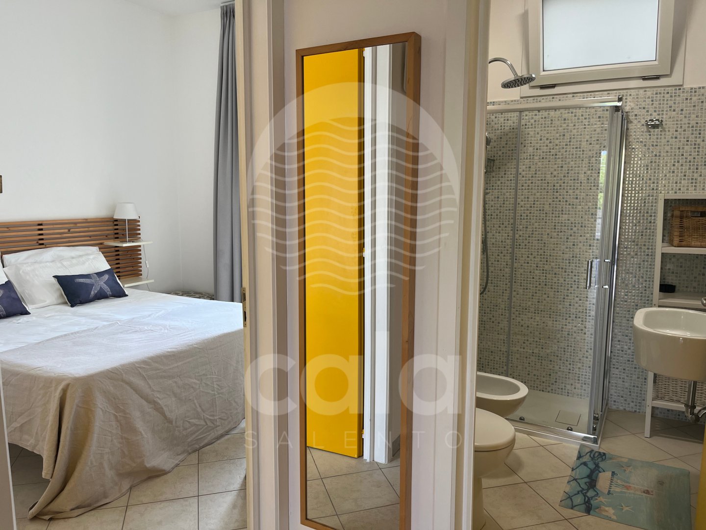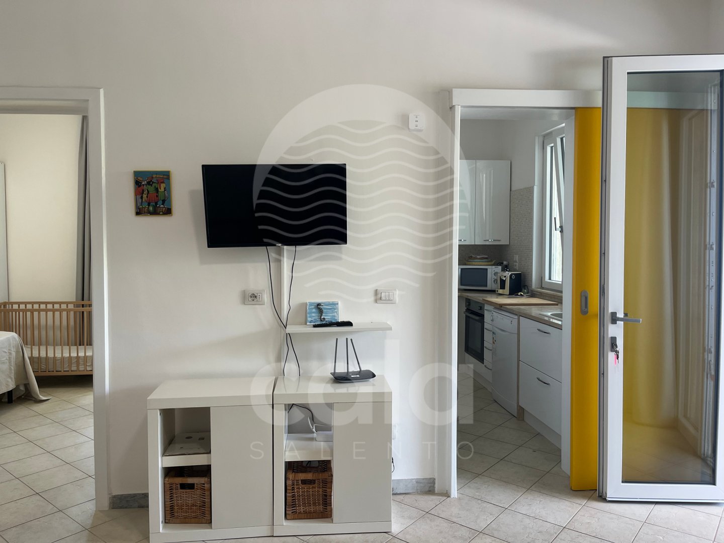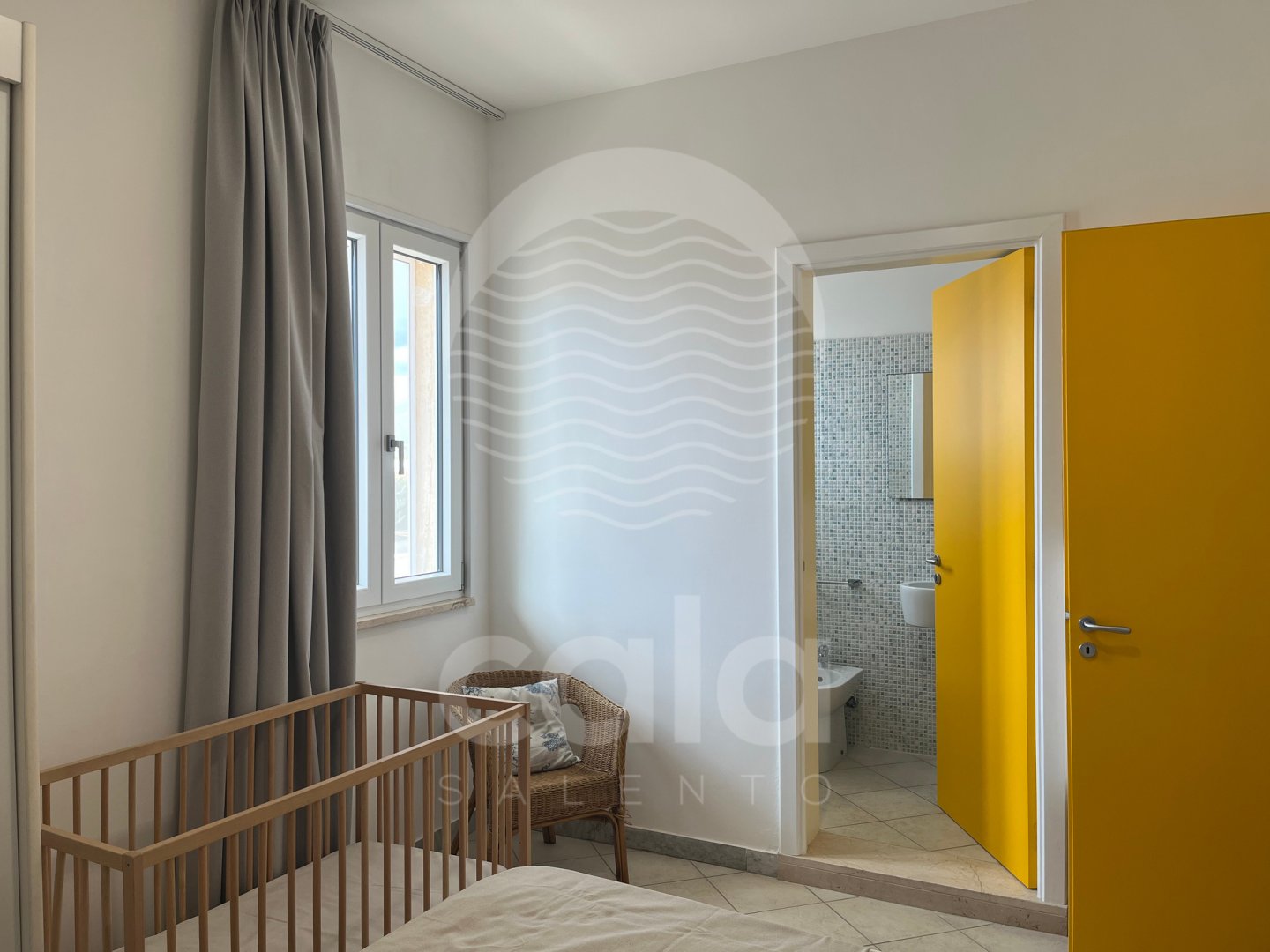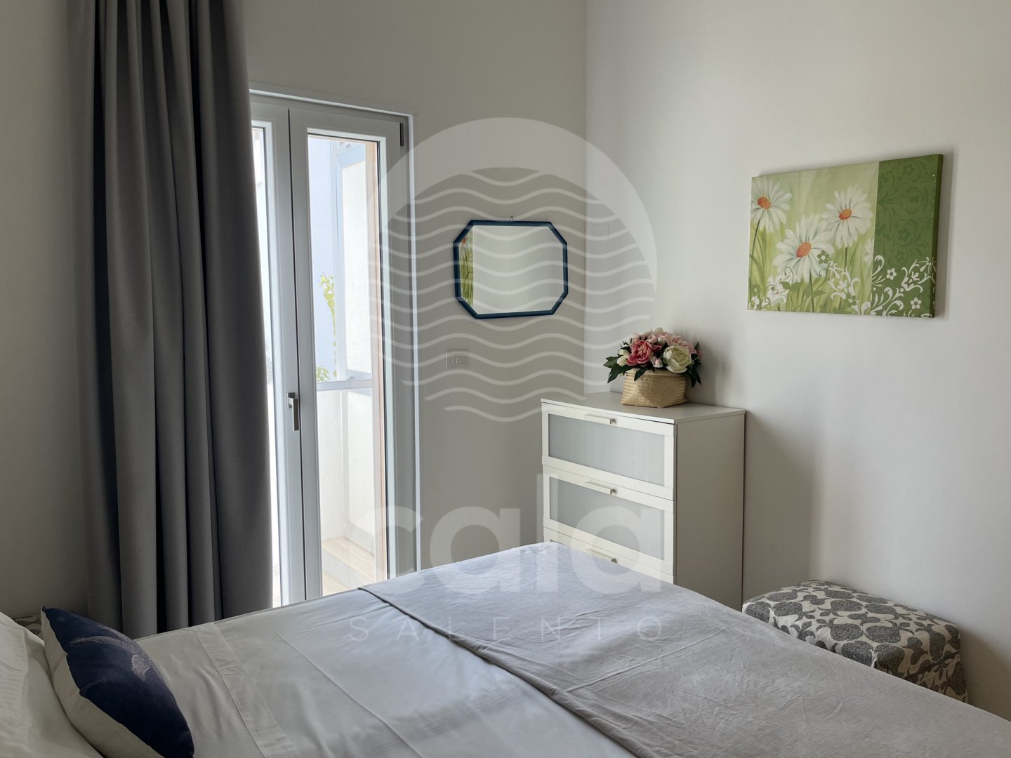 Cala Salento vous propose à la location ce joli appartement au premier étage, situé à seulement 40 mètres de la plage. La grande véranda aménagée avec table à manger et confortable canapé vous permettra de profiter de moments de détente en plein air, tout en admirant de magnifiques couchers de soleil.