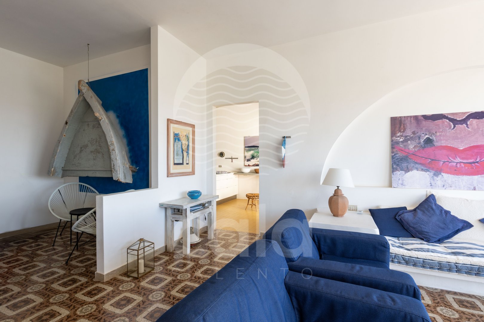 Cala Salento da il benvenuto per la stagione 2025 a Salento&style. Questo appartamento al primo piano è un'oasi di comfort e stile, con un soggiorno ampio che offre una vista mozzafiato sul mare.