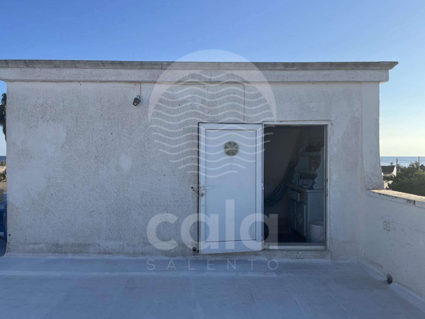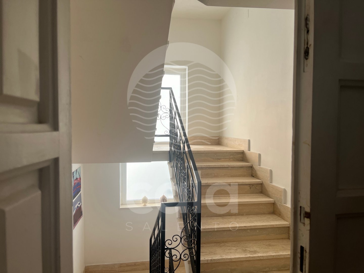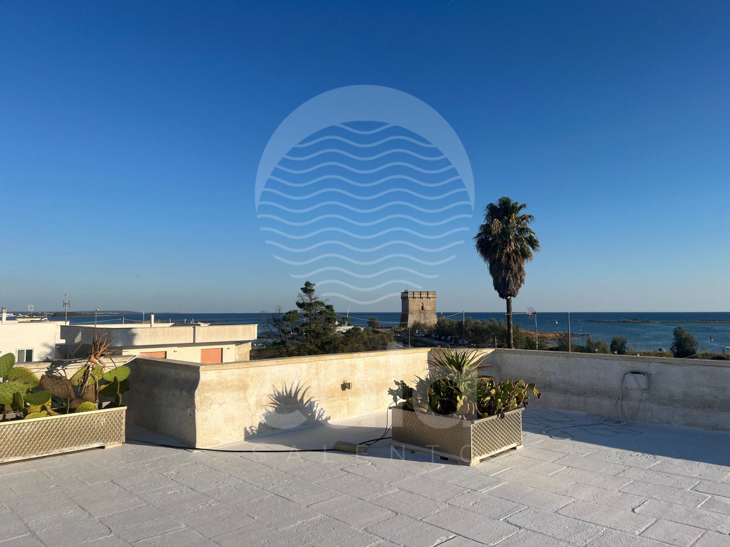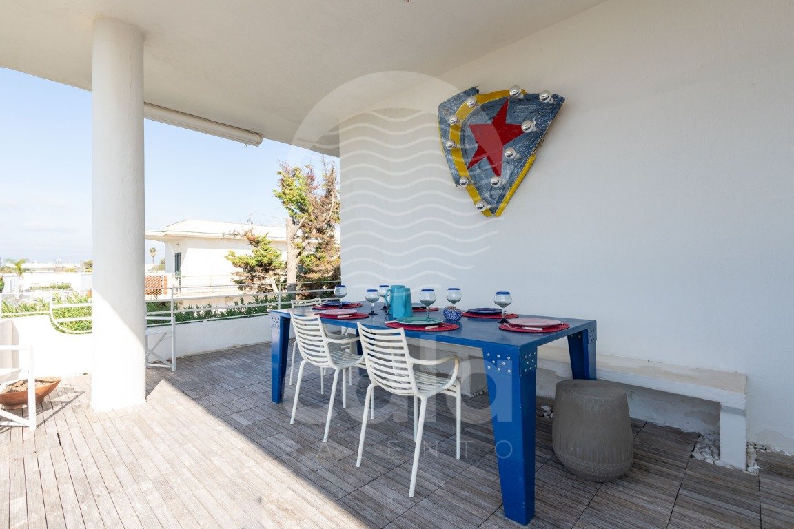 A completare questo splendido appartamento al primo piano, c'è una terrazza arredata che si affaccia sul mare, perfetta per godersi il panorama in compagnia. La terrazza è dotata di un tavolo ampio e sedie comode, ideali per organizzare pranzi o cene all’aperto con amici e familiari. Con illuminazione soffusa, questo spazio esterno crea un’atmosfera accogliente per i momenti di convivialità, rendendo la casa ancora più speciale per chi ama il relax e il contatto con la natura.