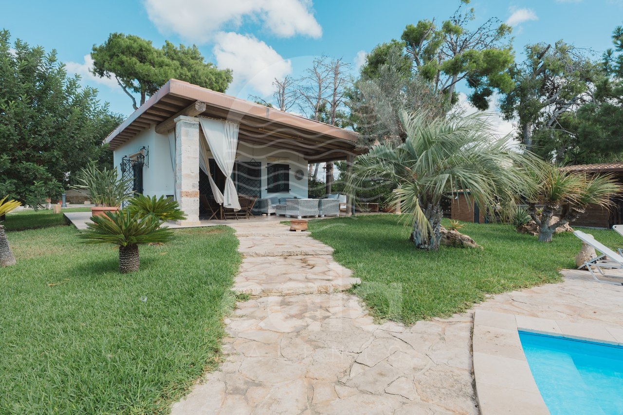 ULTERIORI CARATTERISTICHE: piscina privata ad uso esclusivo, spazio esterno arredato con tavolo e sedie da giardino per piacevoli momenti all'aperto. Sul retro due docce esterne (senza acqua calda). Le finestre sono provviste di zanzariere. Wi-Fi. Animali ammessi. Posti auto. Acqua fornita da acquedotto Pugliese.