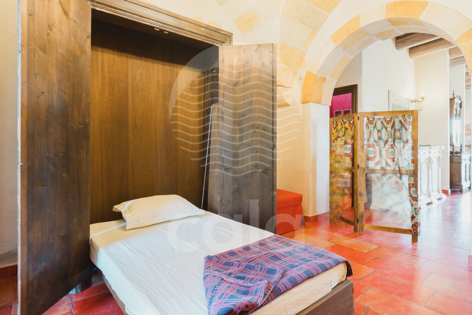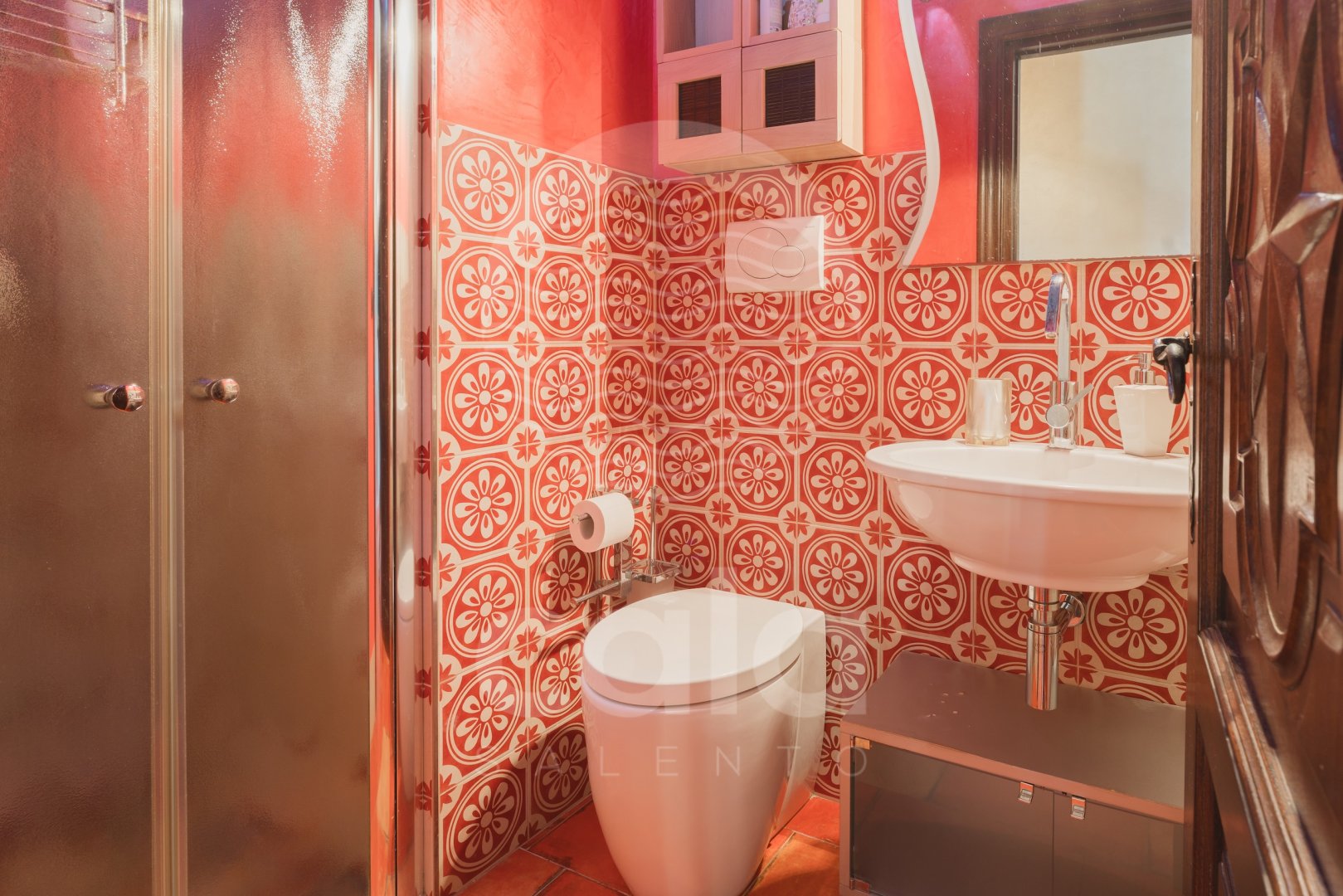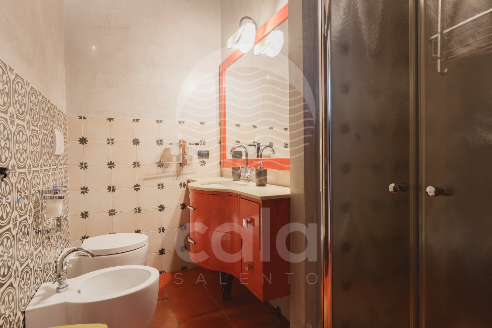 SISTEMAZIONE PER LA NOTTE: n.3 camere da letto : 1^ camera matrimoniale climatizzata con bagno privato completo di servizi e box doccia ; 2^ camera matrimoniale climatizzata con bagno privato completo di servizi e box doccia; 3^ camera in soggiorno con separèè (vedi foto n° 24) composta da due pouf letto singoli e letto a scomparsa 1 piazza e mezza. Terzo Bagno cieco in corridoio alla francese con box doccia .