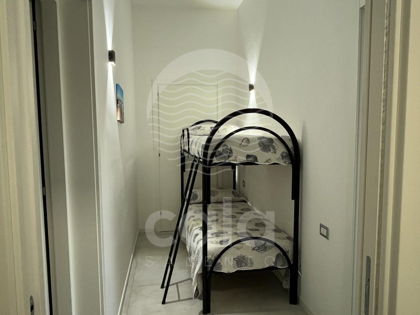 SISTEMAZIONE PER LA NOTTE: camera climatizzata con letto matrimoniale. Disimpegno con letto a castello. Bagno con aerazione forzata completo di servizi, box doccia.