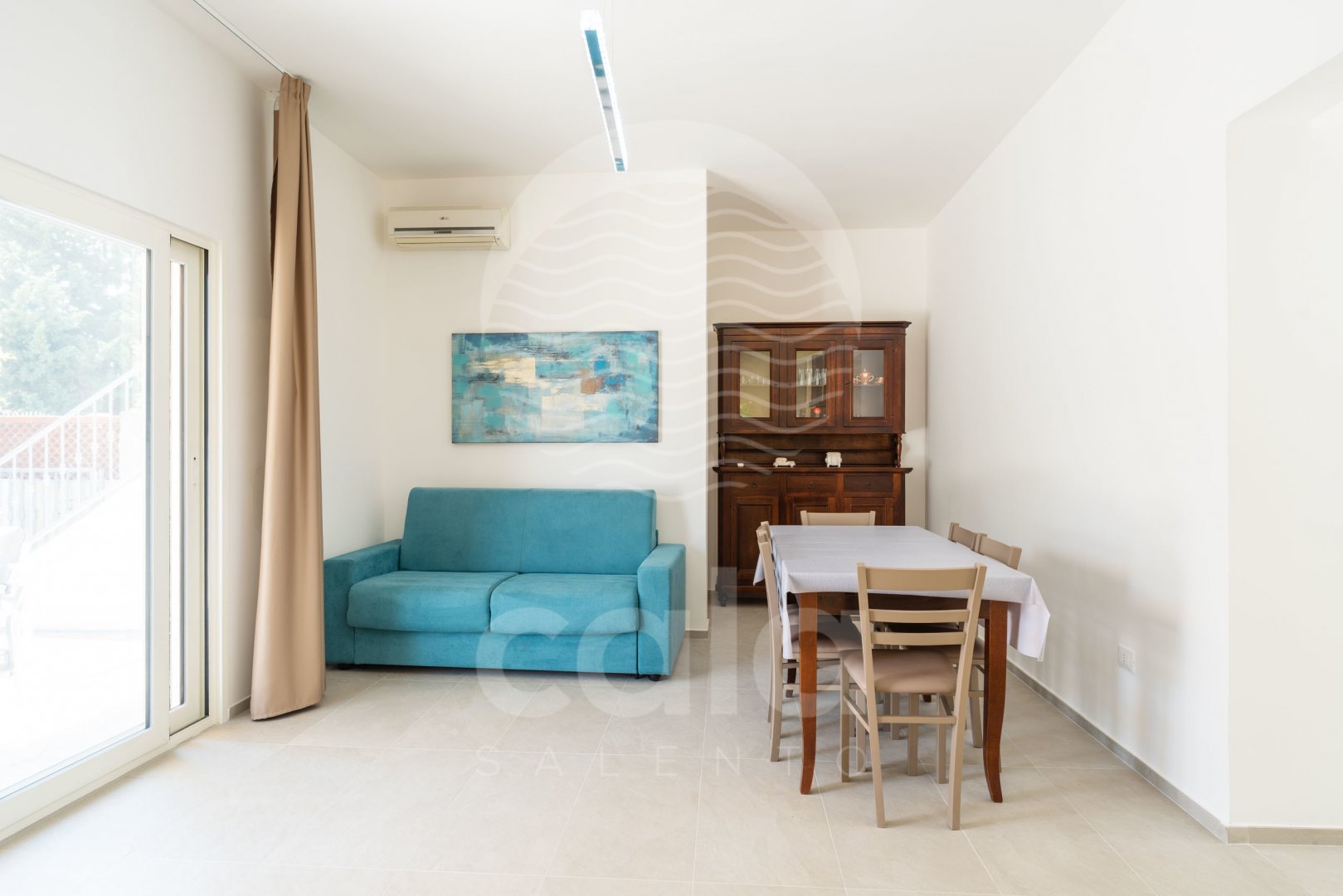 Ad appena 300 metri dalle rinomate spiagge di Torre Lapillo, di fronte al lido Baia del Sol Cala Salento propone in affitto graziosa villetta indipendente con 8 posti letto ( 3 camere e 2 bagni), per delle indimenticabili vacanze al mare. Un comodo giardino con posti auto, veranda attrezzata consentono di trascorrere l’intera giornata all'aperto.